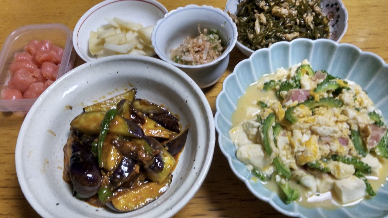 薄切りにして炒め、かつお節をかけて…のつもりが、娘が ”ゴーヤチャンプル?”と、歓声。