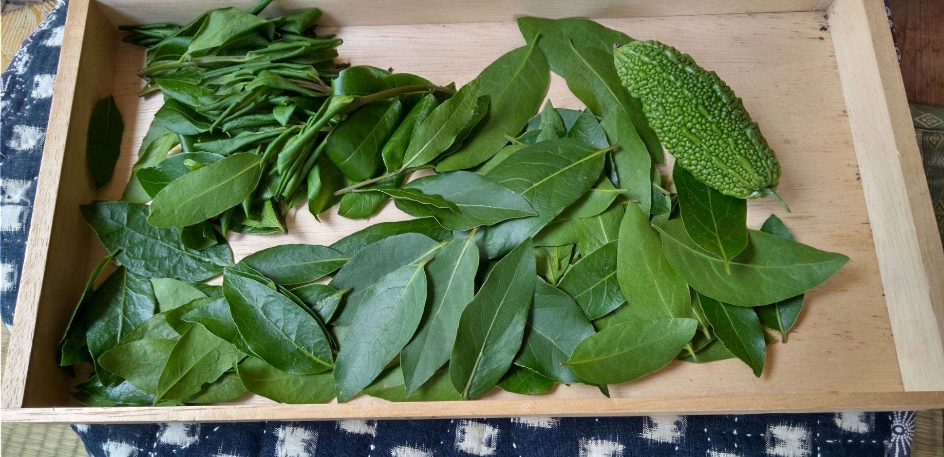 何本か切り取り葉を摘んで干した。