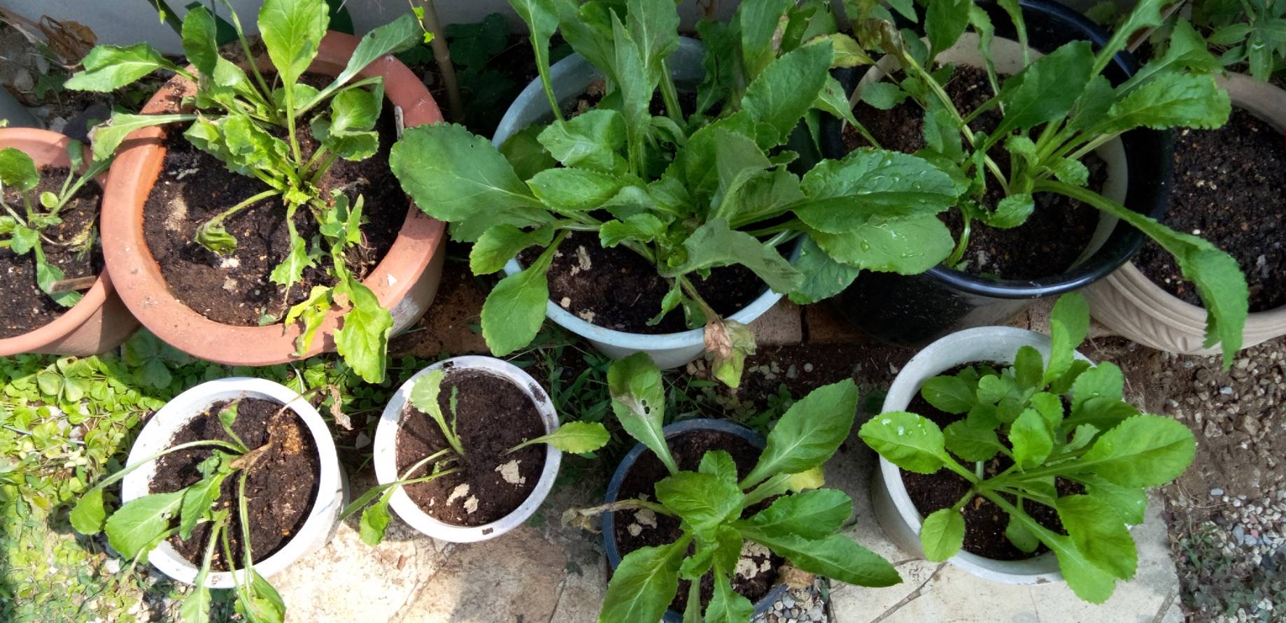蒔いたつりがね草の苗が、たくさん出過ぎ。